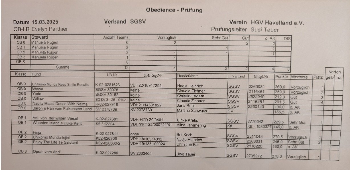Eigentlich sollten morgens die Begleithunde zu erst laufen, aber durch Läufigkeit einer Hündin haben wir den Plan umgestaltet und unsere Obediencesportler mussten somit gleich früh anreisen. Dies war eine geteilte Prüfung, und für uns als Ausrichter eine Premiere. Es wurden Morgens 3 bis 4 Übungen , je nach Klasse durchgeführt und im Anschluss wurden die letzten Übungen absolviert. Da das Wetter nicht so wirklich mitmachte haben wir uns entschlossen, die Gruppenarbeiten ganz zum Schluss durchzuführen. Allen im allen waren alle Sportler positiv überrascht das es gar nicht so anstrengend war. Es gab dem Wetter angepasst super leckeres Essen. Vielen Dank an alle Team`s und Helfer für diesen schönen Tag.